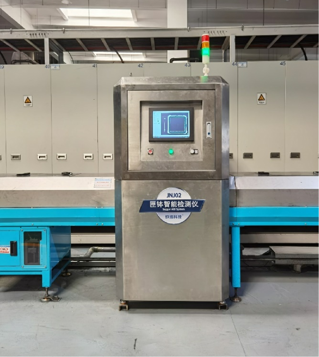 一套用于锂离子二次电池正极材料生产过程中,对匣钵内异物和正极材料收缩率进行在线检测的设备。